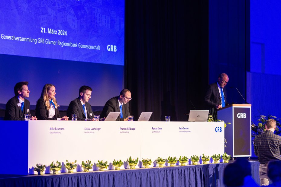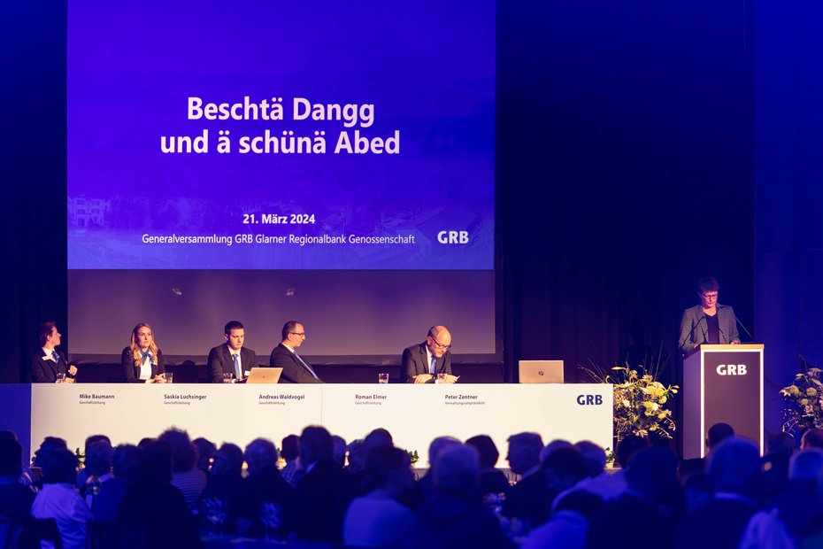 Am Donnerstag, 21. März 2024, fand um 18:00 Uhr die Generalversammlung der GRB Glarner Regionalbank in der Lintharena in Näfels statt