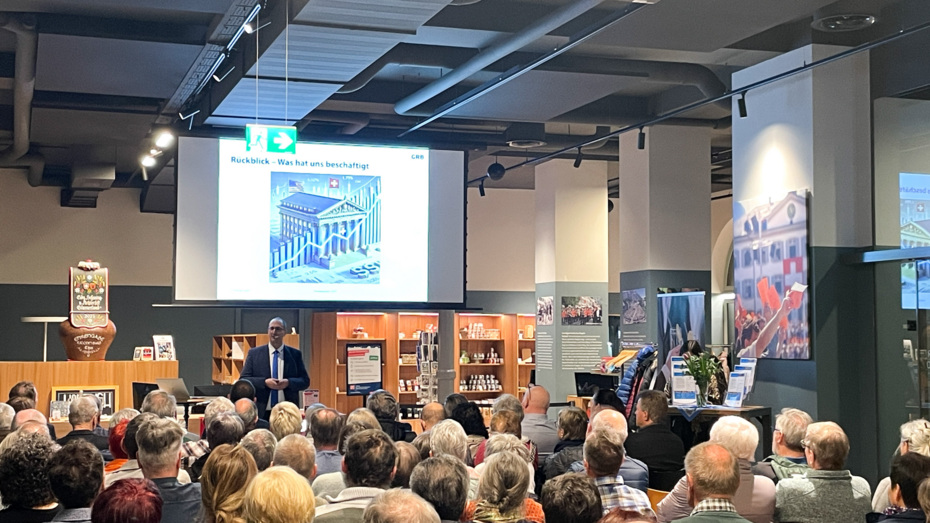 Gastreferenten Alessandro Poletti, Leiter Research & Advisory der befreundeten Ostschweizer Regionalbank acrevis aus St. Gallen, mit welcher die GRB in der Vermögensverwaltung eng zusammenarbeitet, vermochte einen vertieften Einblick in die Wirtschafts- und Finanzmarktentwicklungen 2024 wiederzugeben, bevor der Sprung ins 2025 und ein Ausblick ins laufende Jahr folgte. Informationen und Prognosen zum Arbeitsmarkt, der Geldpolitik und der Teuerung durften dabei natürlich nicht fehlen.
